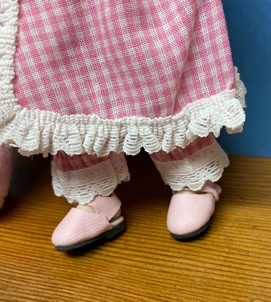 Pink check 2pc outfit for 20 cm dolls including Meadowdolls Chibbi (model), Hana and Doona. Outfit Only.  Fayette shoes sold separately.  Bunny is not included.